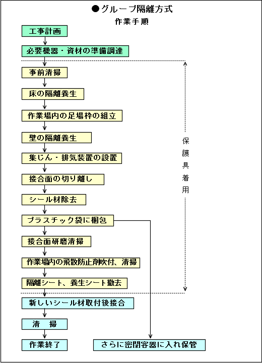 | ※除去作業を開始後、シール材が容易に取り外せずに削り取りが必要となった場合は作業を中止し、レベルG1程度の曝露防止対策を講じてから作業を再開する。 |