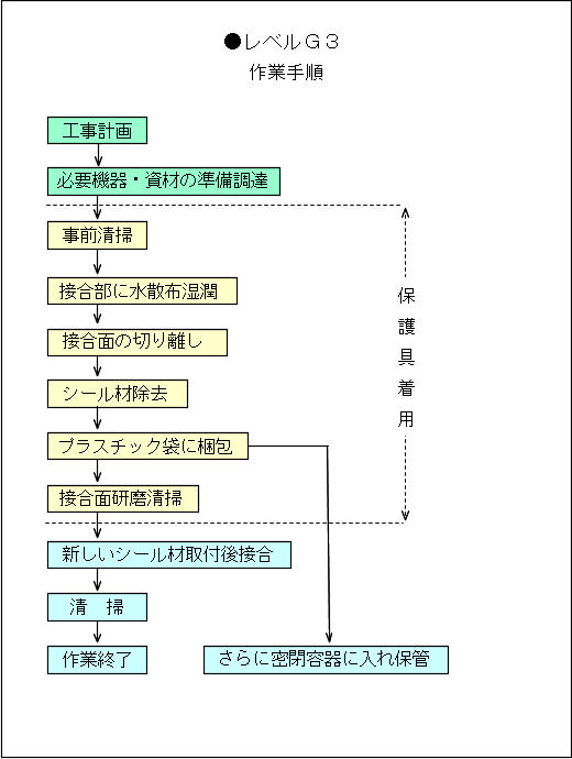 | ※取り外した際にフランジの接合面にシール材の付着がある場合は、レベルG2と同程度の湿潤飛散防止対策を行う。 |